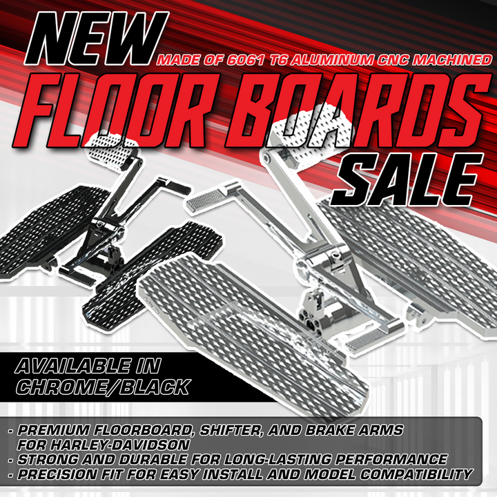 Give your Harley a bold upgrade with our brand-new Chrome Forward Control Floorboards, built for 2014 and newer Touring models. These extended boards push your feet forward for a laid-back, stretched-out ride—perfect for long hauls or cruising in style. The high-polish chrome finish adds a premium custom look, while the wide anti-slip surface keeps your boots planted and comfortable.